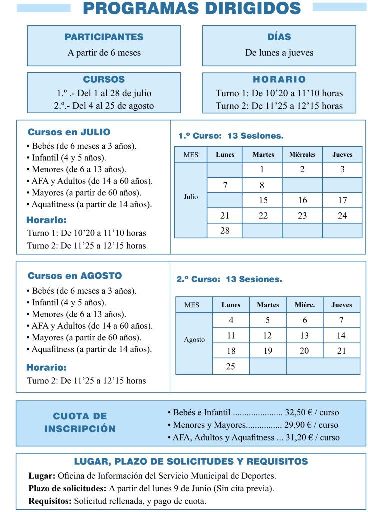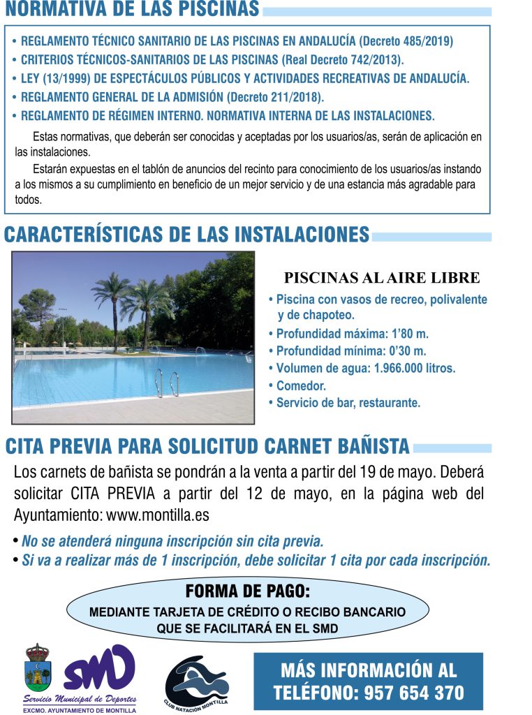 Cita previa obligatoria en la Oficina de Información del Servicio Municipal de Deportes (Pabellón) de la piscina Montilla.