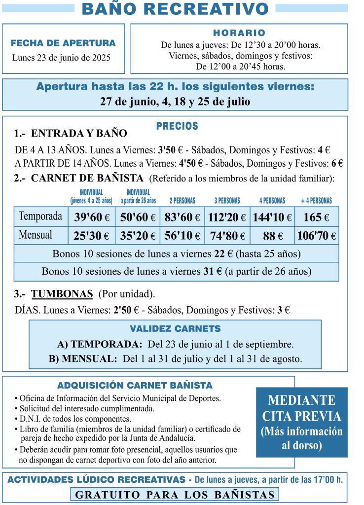 🏊 BAÑO RECREATIVO – PISCINA MUNICIPAL DE VERANO DE MONTILLA 2025